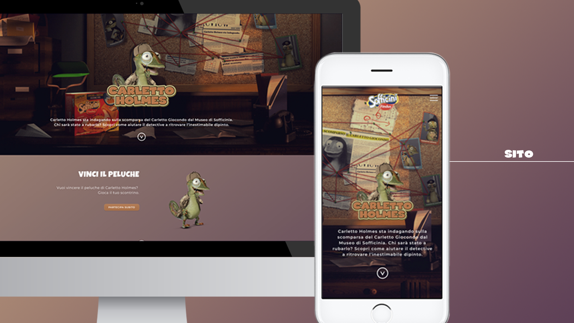 Findus ci ha chiesto di promuovere e rilanciare i Sofficini, creando una promo che avesse uno sviluppo sia offline che online. Abbiamo quindi creato uno storytelling con protagonista Carletto nelle vesti di un famoso investigatore: Carletto Holmes. Al centro della storia il furto del famoso dipinto “Carletto Giocondo”, presentato nella promo-activation dell’anno precedente.