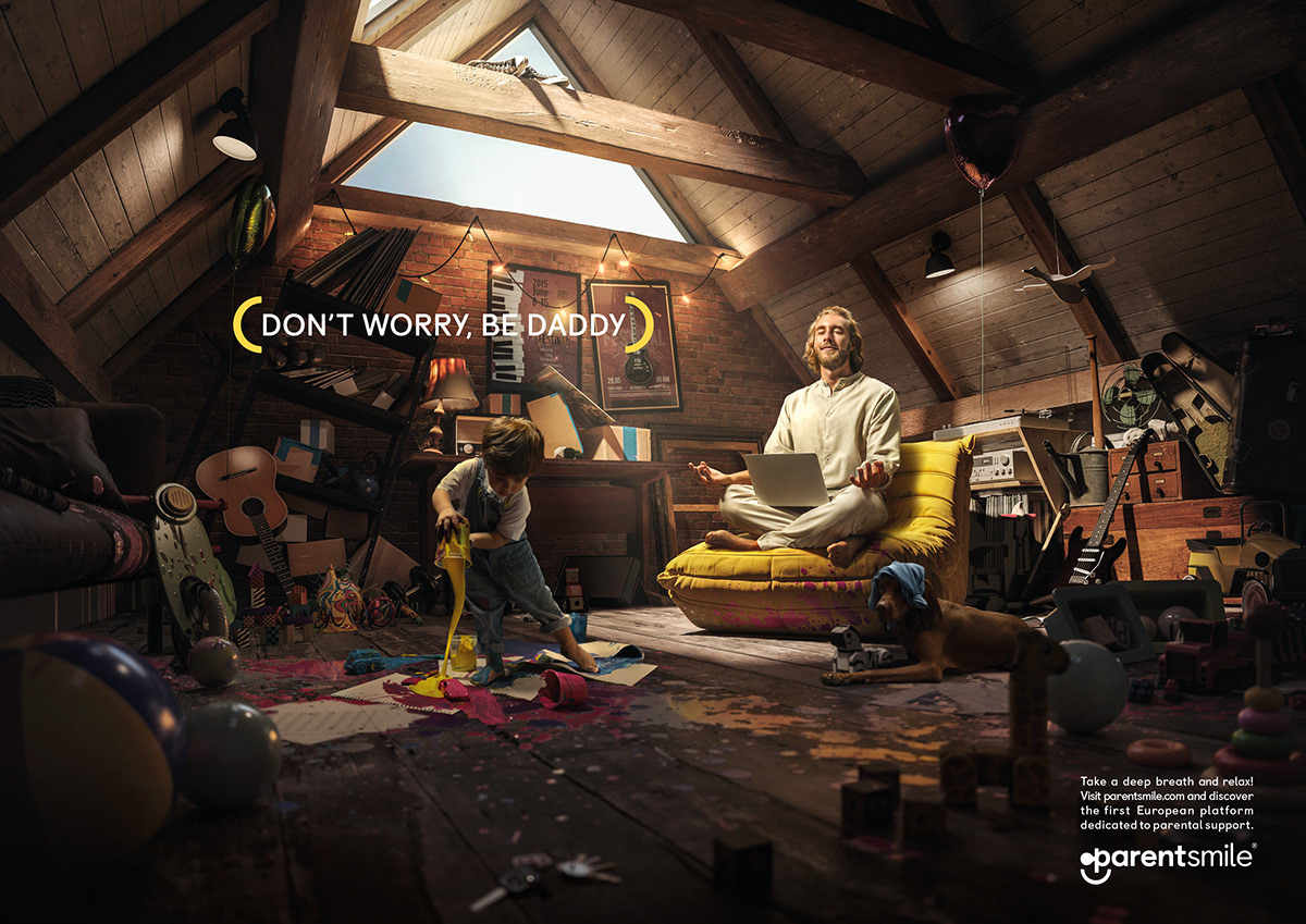 The parents, the kids and the dog are shot separately, and then implemented in a 3D ambient. It's been a long process, with carefully crafted CGI items, but the result definitely brought us our own inner peace.